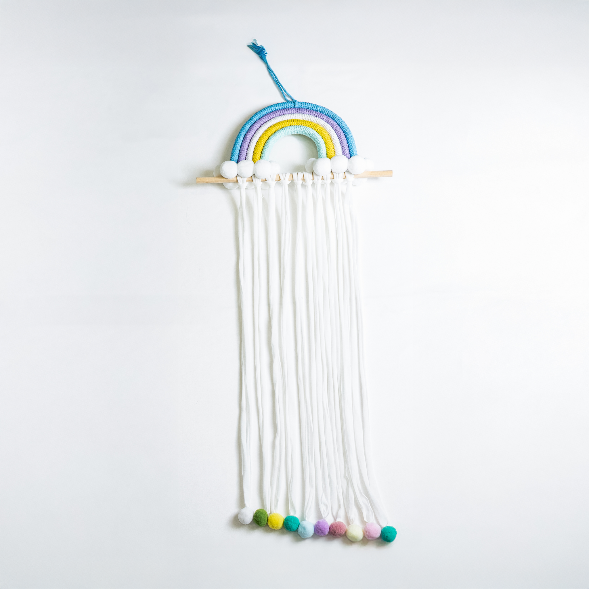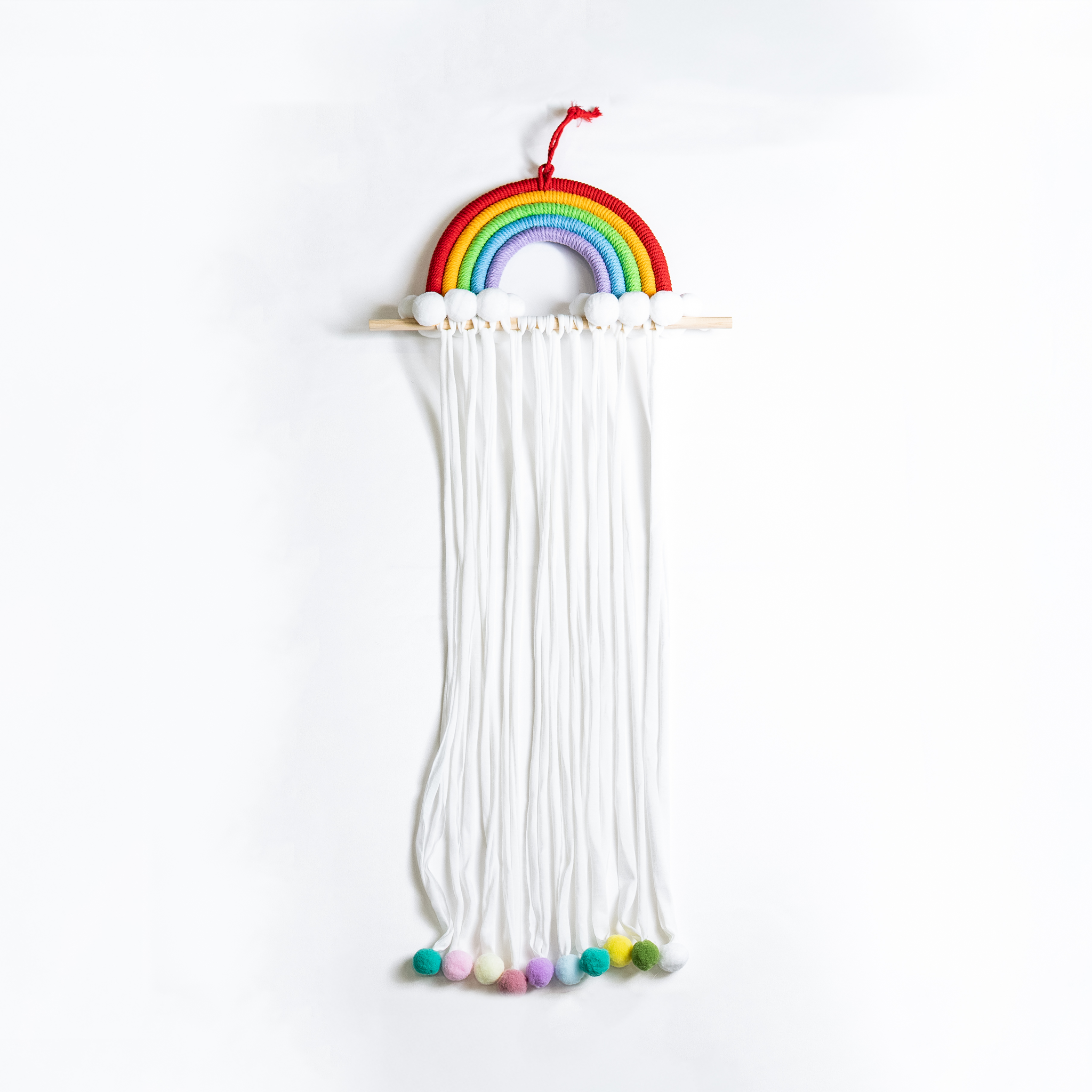 Designed to hang easily on the wall using the grosgrain ribbon loop, the Rainbow Hair Clip Holder keeps everything visible, accessible and beautifully presented.