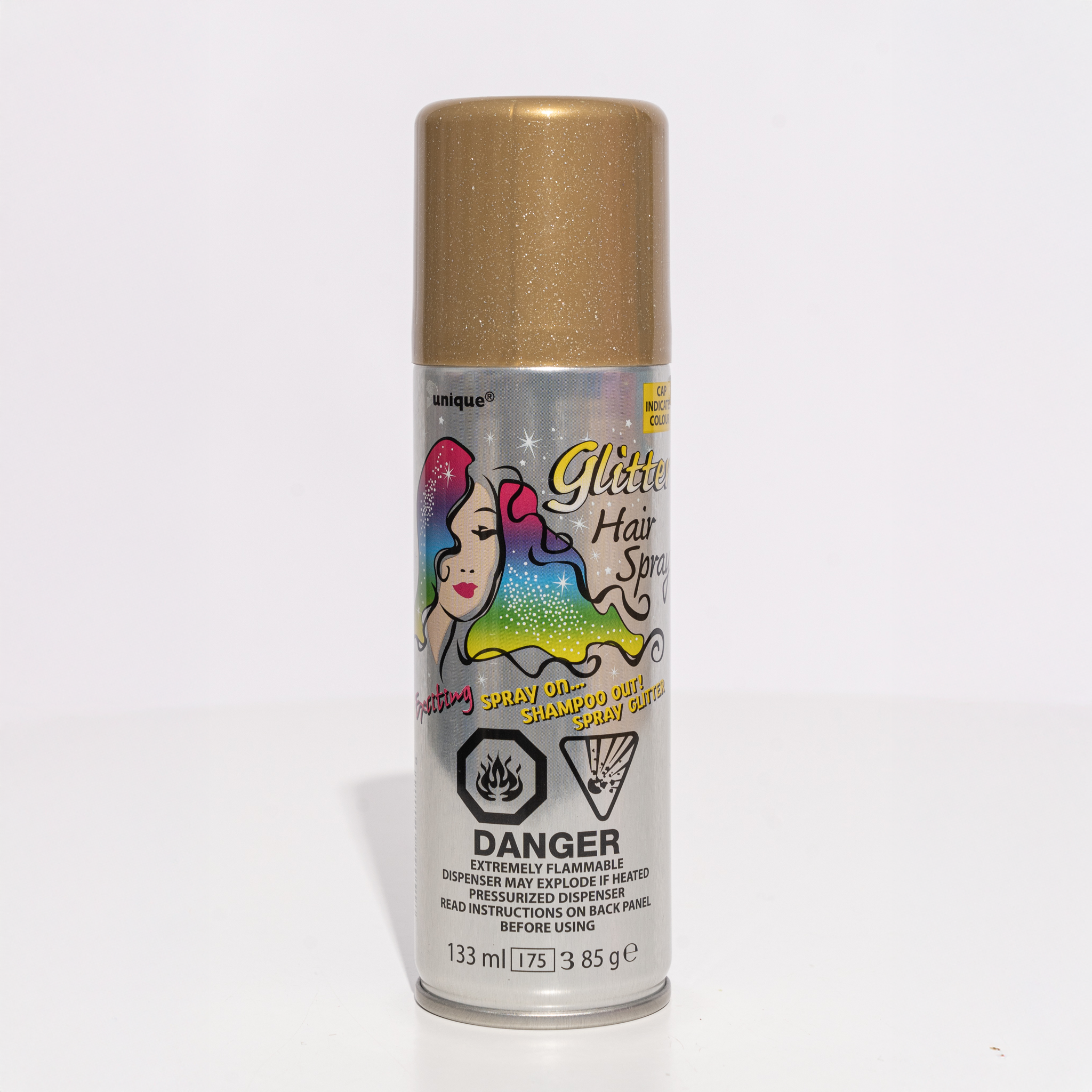 Shine bright with our Gold Coloured Hairspray, the perfect way to add a little magic and glamour to any hairstyle! Whether it’s for a school concert, fancy dress, or festive celebration, this golden shimmer gives your child’s hair a dazzling glow. The colour sprays on easily and washes out completely with shampoo.