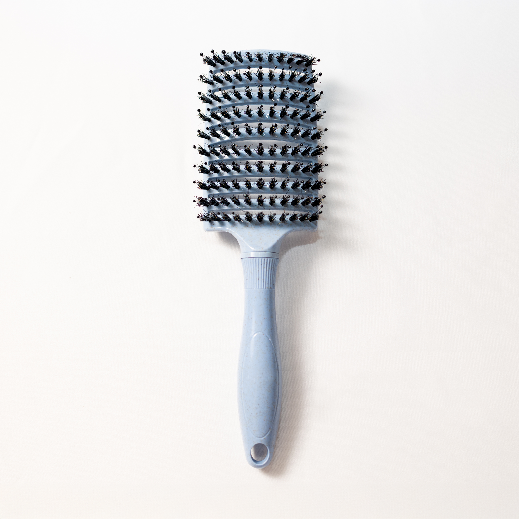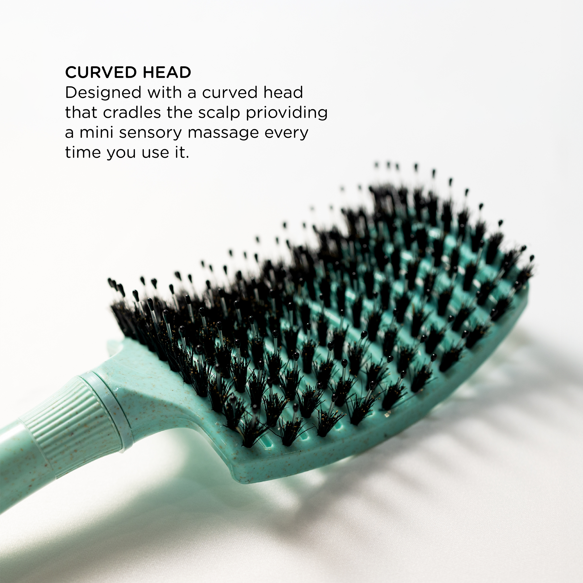 The curved head gently hugs the scalp, giving a light massage every time you brush. Its smart blend of nylon pins and boar bristles works twice as hard: