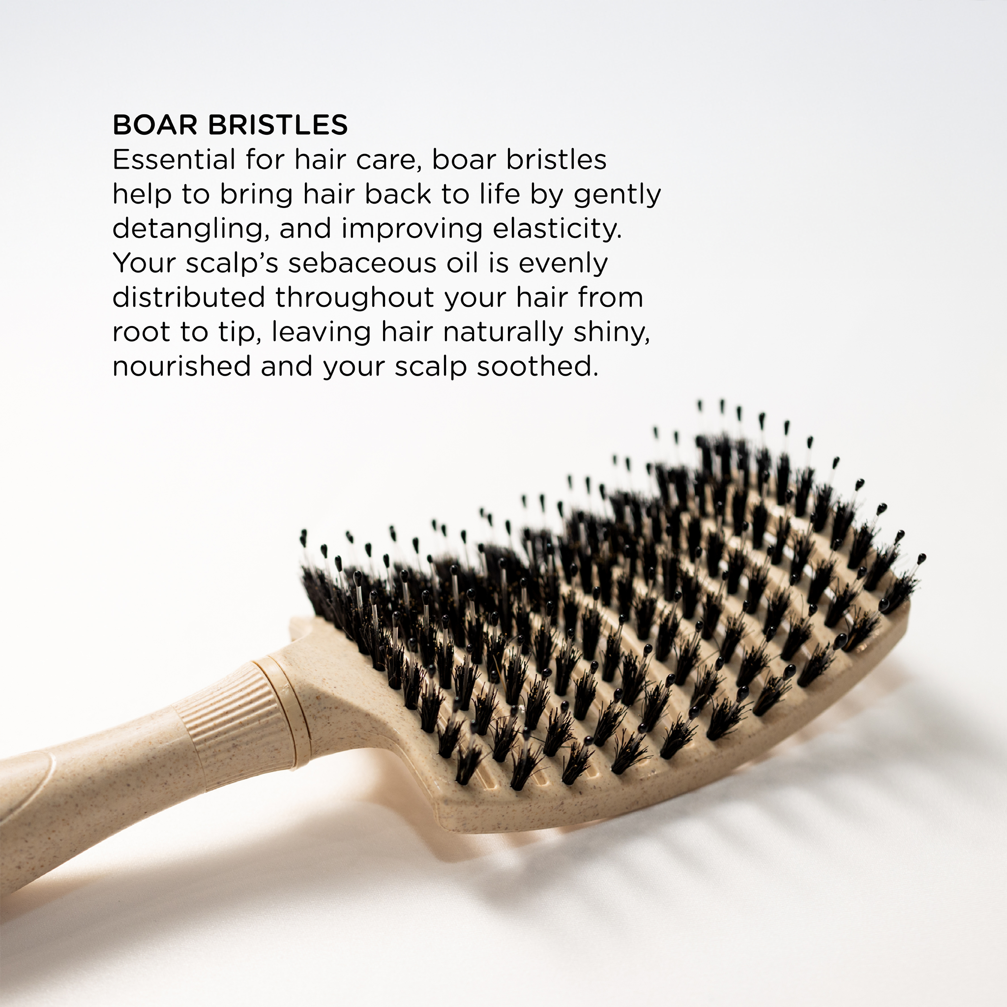 The shorter boar bristles smooth, shine, and distribute natural oils for silky, healthy-looking hair